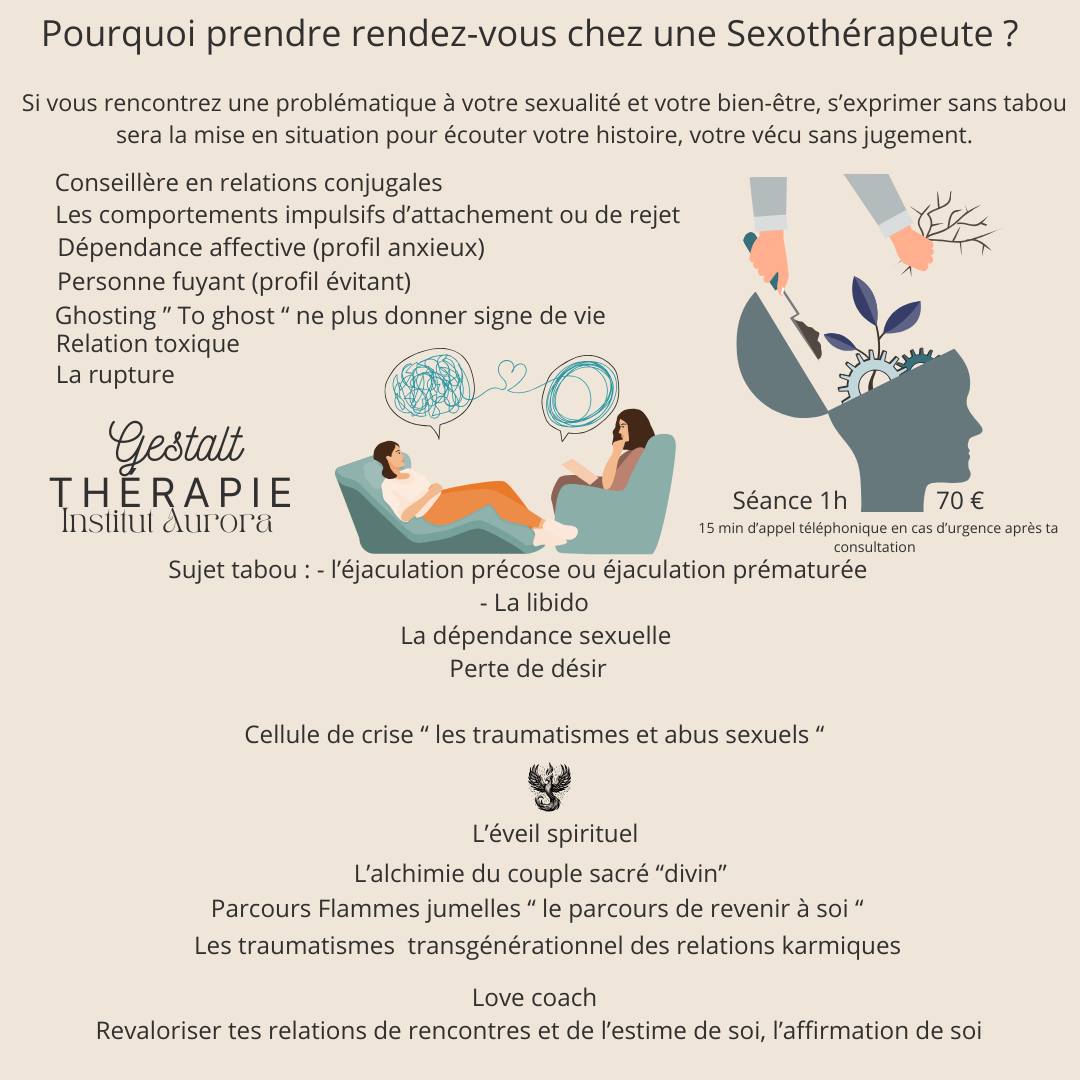 Esthéticienne certifiée et thérapeute également Gestalt -Thérapie mettre de la conscience sur quelque chose qui n'a pas encore été digéré - Psychothérapie - Prestation Sexothérapie. Depuis toujours j'aime la nature, le naturelle et la conception de la création que ce soit artistique, mystique avec l'énergie vitale Kundalini " ton feu de création et de vie ". Je vous propose de l'esthétique basée sur l'ayurveda médecine ancestrale indienne.
